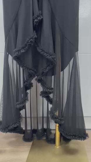 Su escote asimétrico de un solo hombro aporta un toque contemporáneo y refinado, mientras que la manga larga integrada con drapeado delicado añade elegancia y distinción. El corte fluido y la falda midi con movimiento crean un look femenino, estilizado y muy favorecedor, ideal para eventos especiales.