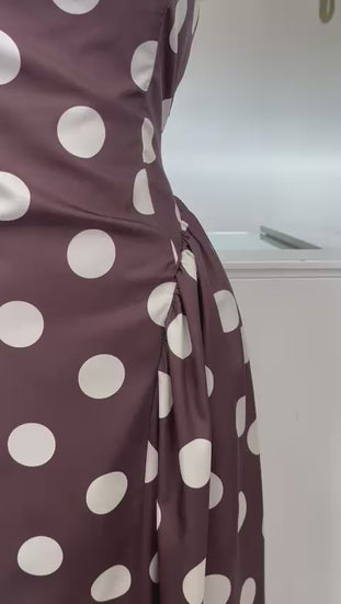 Este vestido midi destaca por su diseño fino y sofisticado, confeccionado en una tela suave con estampado floral en tonos rosados, vinos y verdes que aportan un estilo romántico y atemporal. Su cuello alto estructurado y las mangas largas abullonadas crean una silueta elegante, ideal para eventos donde se busca una presencia delicada y refinada.