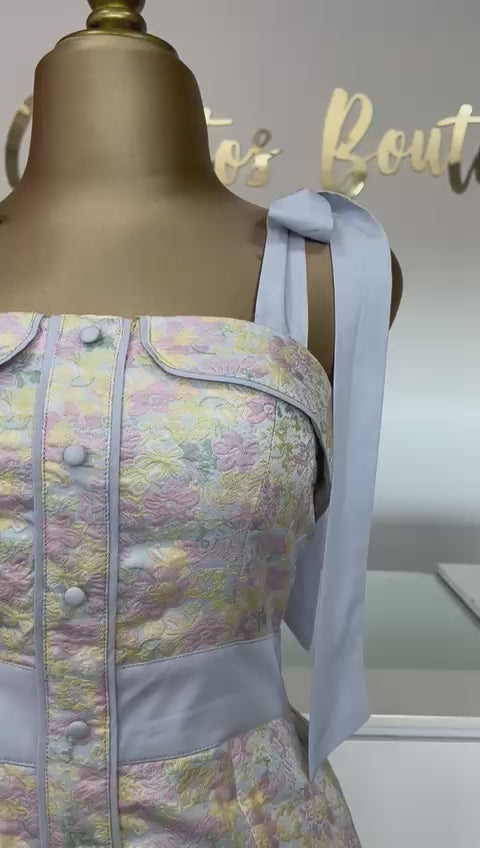Un vestido romántico, delicado y ultra femenino, perfecto para quienes aman los detalles y los tonos suaves. Ideal para eventos de día, bautizos, comidas especiales, graduaciones o celebraciones primaverales.